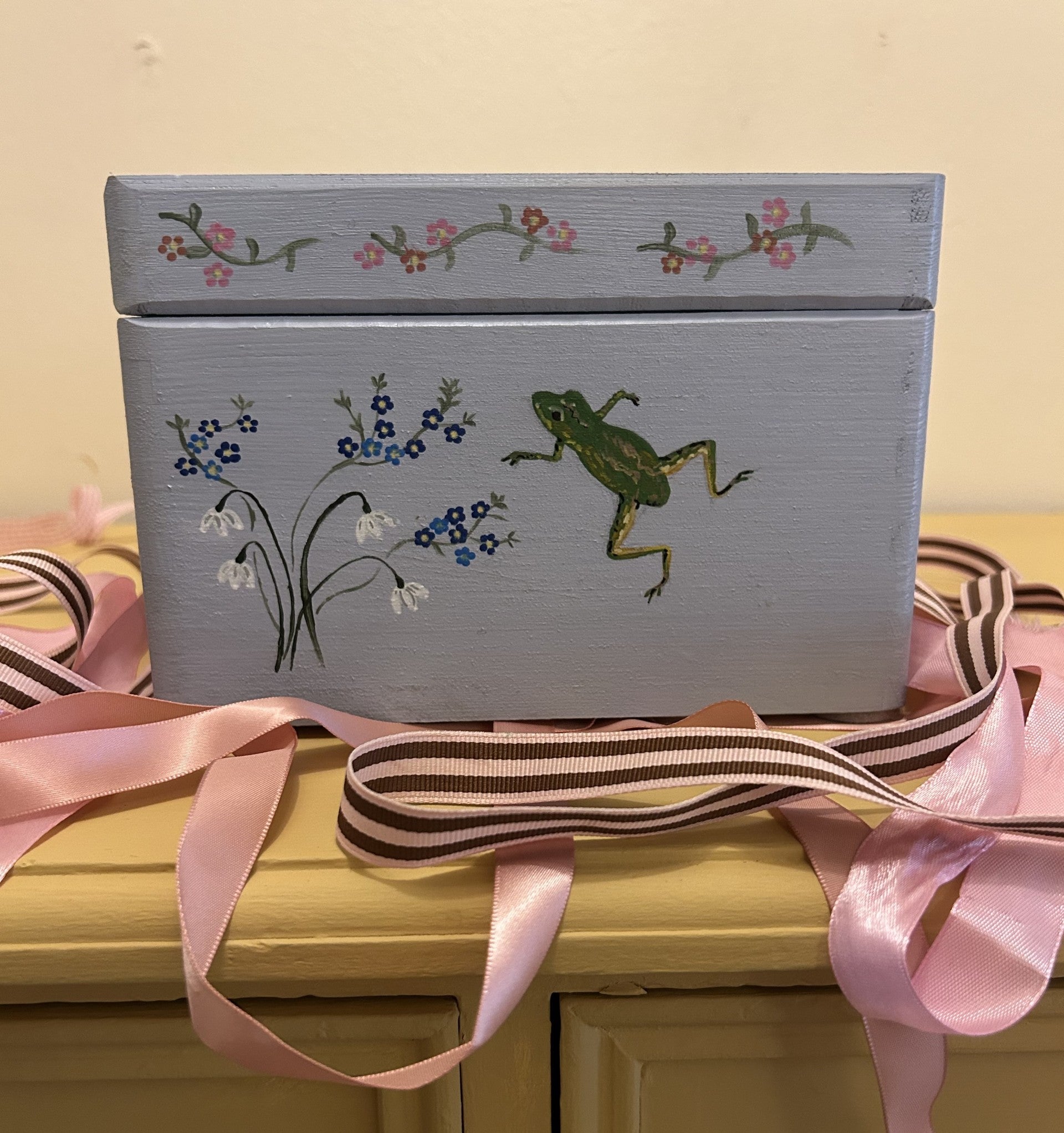 This bespoke memory box is a timeless keepsake for a child's treasured items. It can be personalised with the child's name an in a colour-scheme of your choice.