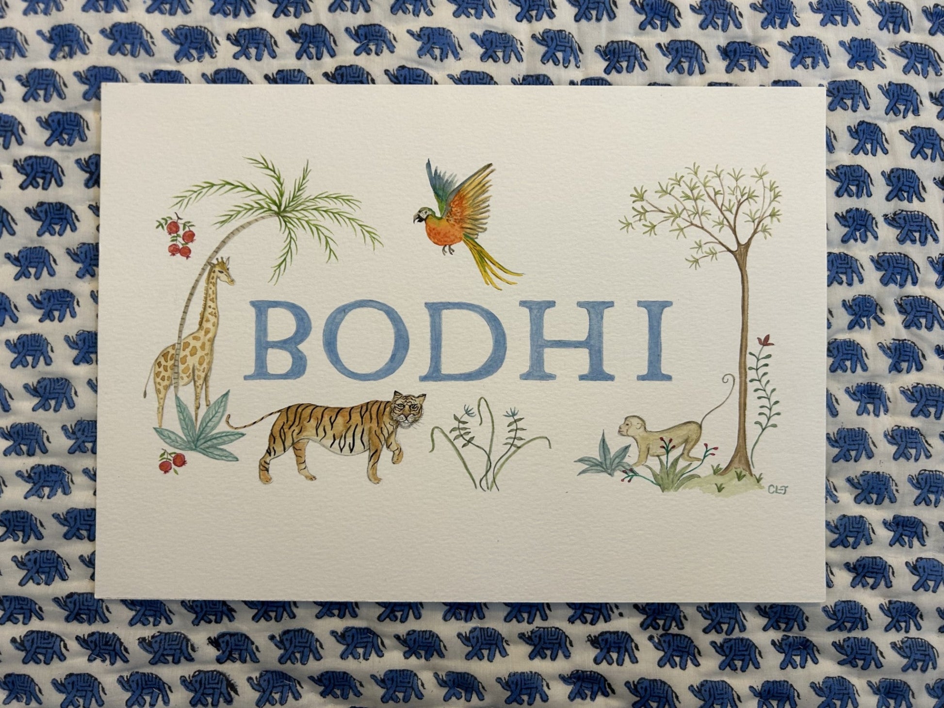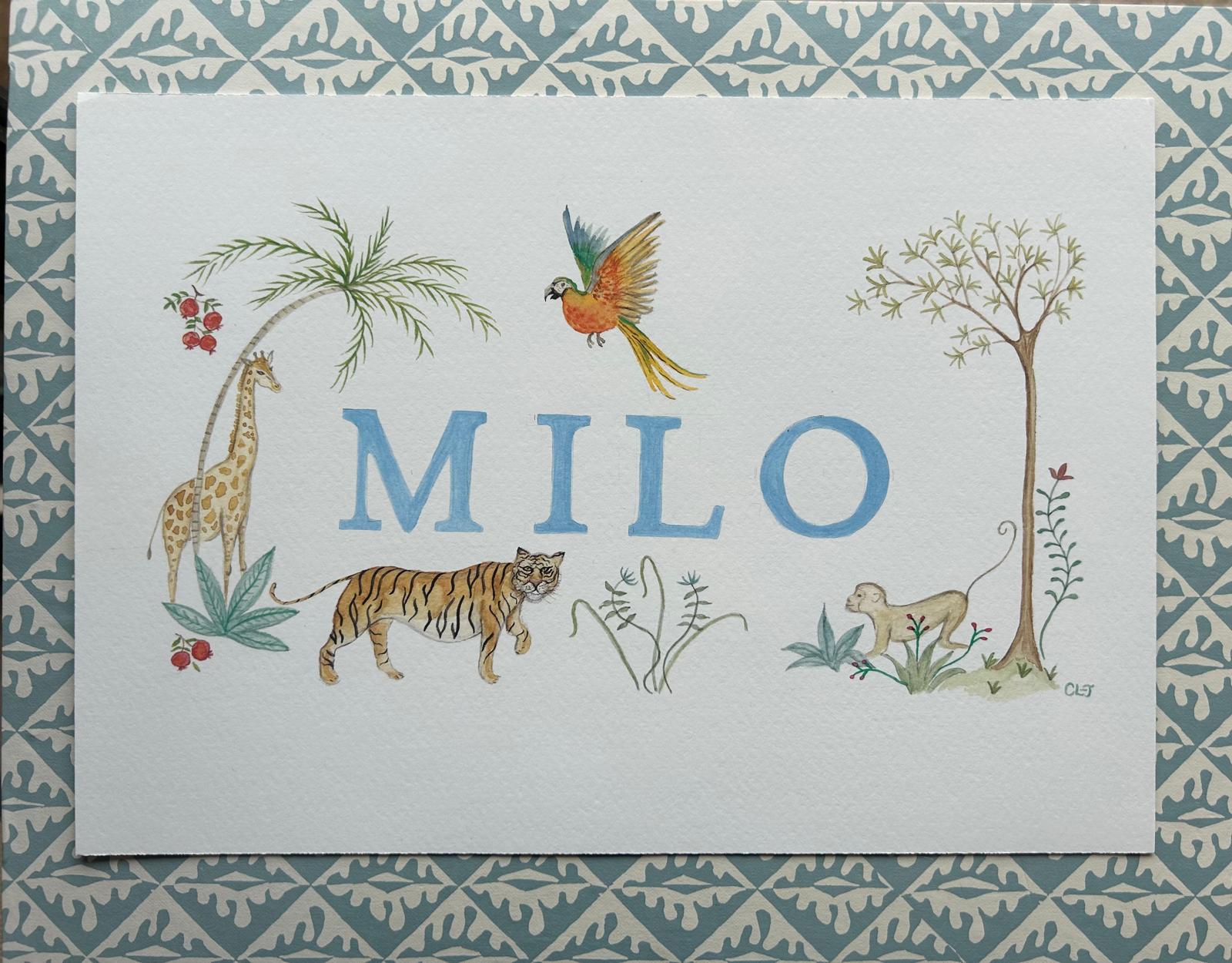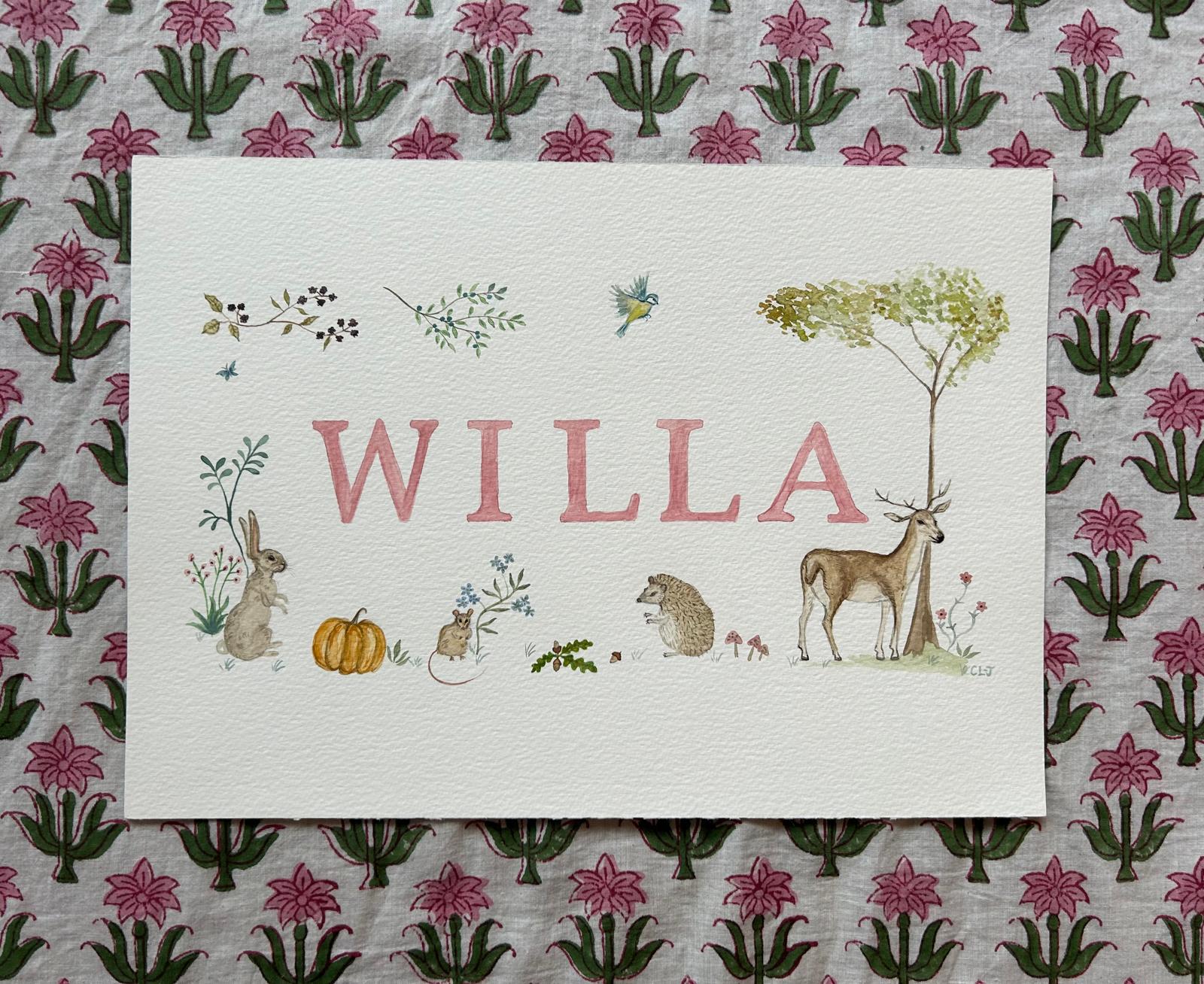 The perfect present for a little girl or boy to have framed in their nursery. Painted on high quality giclèe paper with a hand-painted letter of your choice in pink, blue or green.